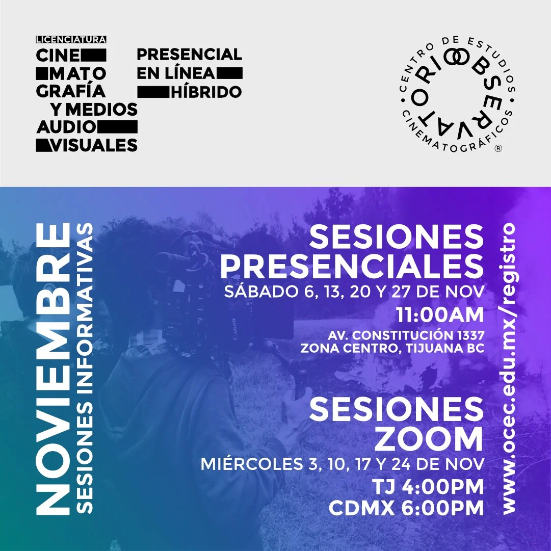 Fechas de las sesiones informativas programadas para el mes de Noviembre para conocer más sobre la Licenciatura en Cinematografía y Medios Audiovisuales.