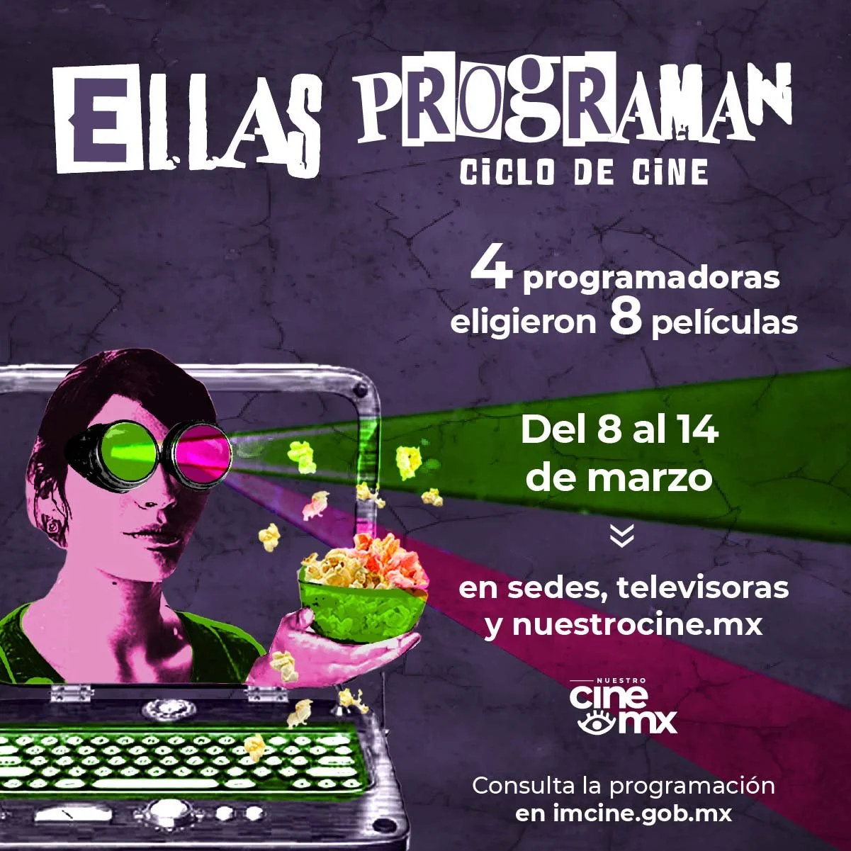 La Secretaría de Cultura federal, a través del Instituto Mexicano de Cinematografía (Imcine), presenta la tercera edición de “Ellas Programan”, ciclo de cine dedicado a promover el talento femenino en el cine mexicano, el cual forma parte de las actividades alrededor de la conmemoración del Día Internacional de las Mujeres 2024.