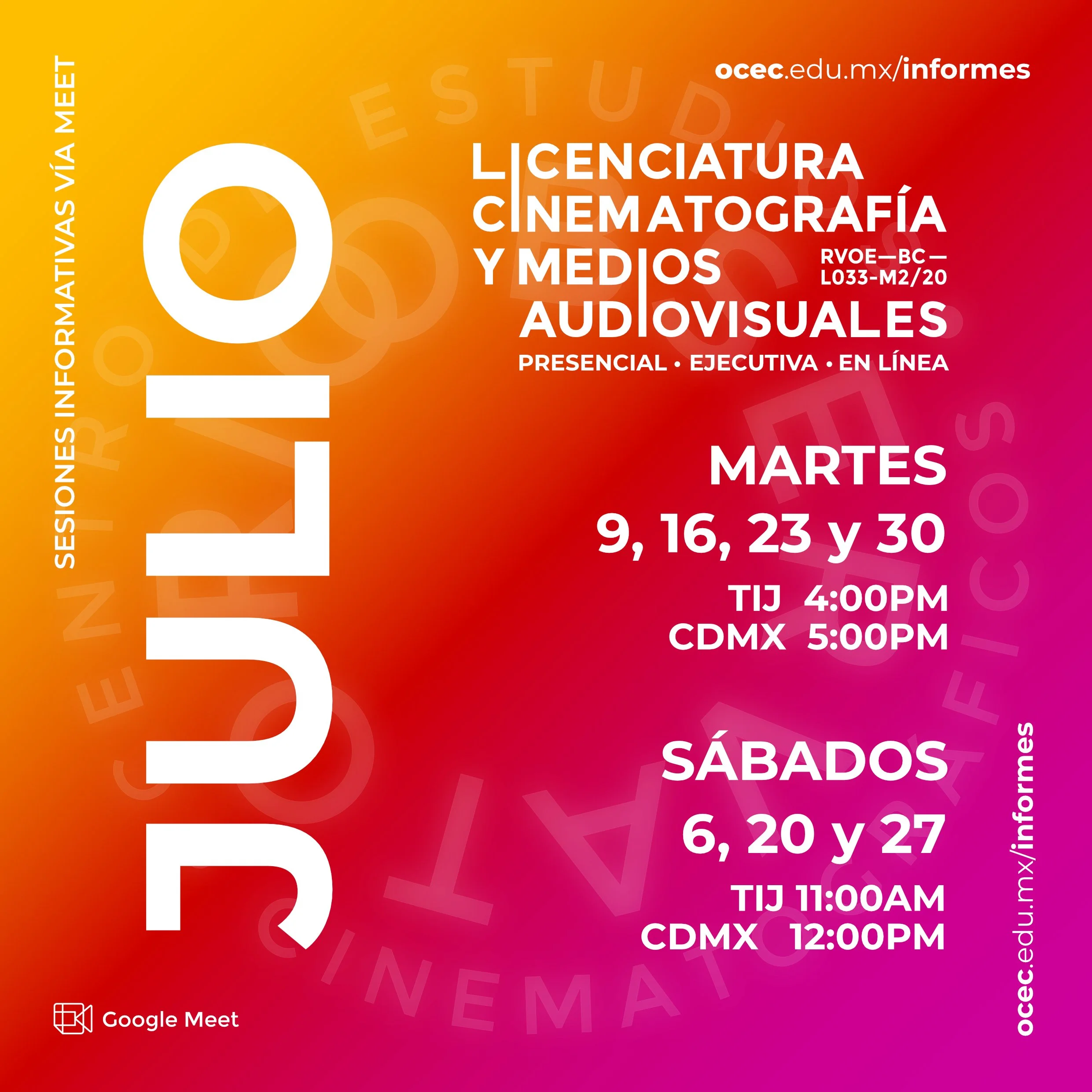 Regístrate a una de las fechas de las sesiones informativas virtuales (MEET) programadas para este mes.