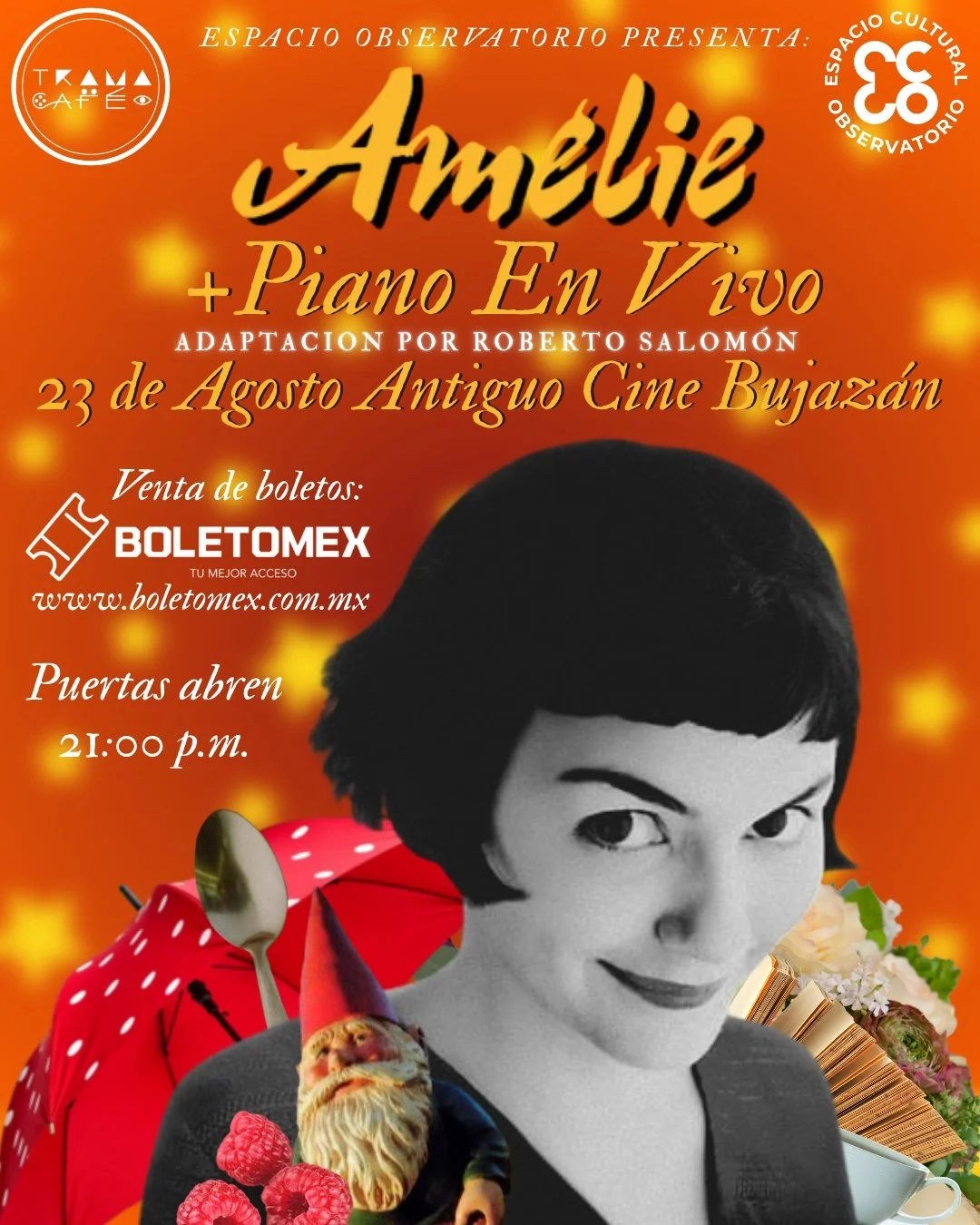 🎬 Espacio Observatorio presenta Noche francesa: Proyección especial de Amélie con musicalización en piano por Roberto Salomón @robertosalomonmusic