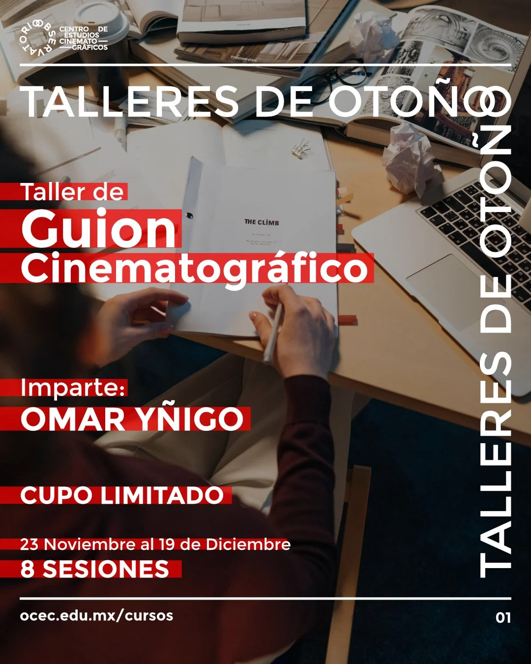 Taller que aborda la teoría y práctica del guión cinematográfico, con el propósito de conocer y dominar las herramientas y recursos principales para lograr la creación de un guión de cortometraje sólido, emotivo, dramático, entretenido, verosímil, y viable de ser producido.